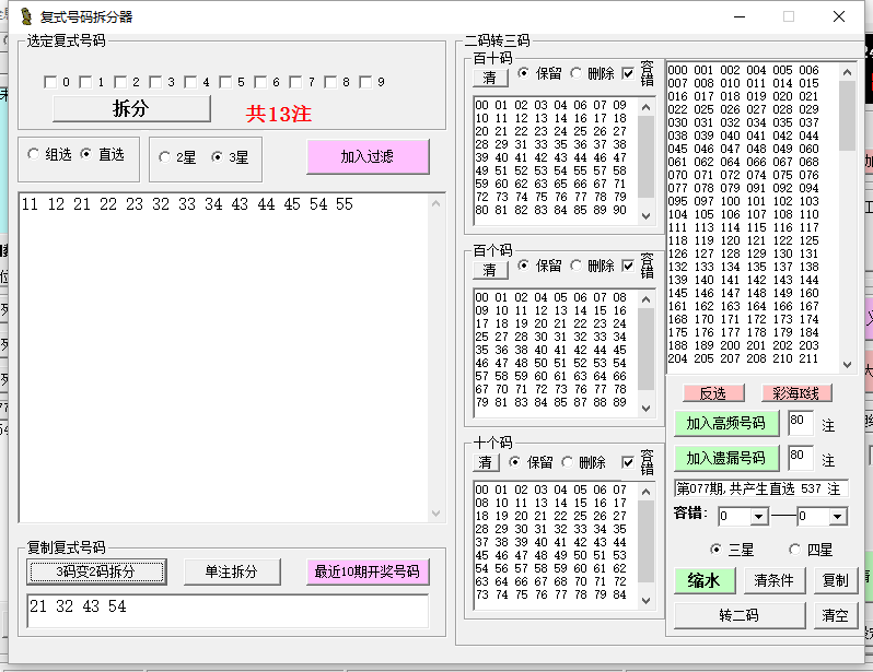 | 【软件名称】《彩海探针数字彩全能王》 | ||||||
